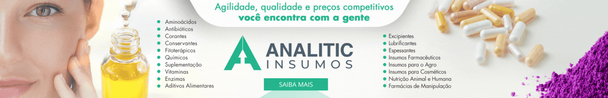 Ingrediente: ACESSULFAME-K ACETATO DE ZINCO ACETATO ISOBUTIRATO DE SACAROSE (SAIB) ÁCIDO ACÉTICO E ACETATOS ÁCIDO ADÍPICO E ADIPATOS ÁCIDO ALGÍNICO E ALGINATOS ÁCIDO ASCÓRBICO (VITAMINA C) E ASCORBATOS ÁCIDO BENZÓICO E BENZOATOS ÁCIDO BÓRICO ÁCIDO CARMÍNICO, VERMELHO CARMIM E EXTRATO DE COCHONILHA ÁCIDO CÍTRICO E CITRATOS ÁCIDO CLORÍDRICO ÁCIDO ERITÓRBICO E ERITORBATO ÁCIDO ETILENODIAMINO TETRA-ACÉTICO (EDTA) ÁCIDO FÓRMICO (METANÓICO) E FORMIATOS ÁCIDO FOSFÓRICO OU ORTOFOSFÓRICO E ORTOFOSFATOS ÁCIDO FUMÁRICO E FUMARATOS ÁCIDO GLUTÂMICO E GLUTAMATOS (MENOS MSG) ÁCIDO GUANÍLICO E GUANILATOS ÁCIDO HIALURÔNICO ÁCIDO INOSÍNICO E INOSINATOS ÁCIDO LÁCTICO ÁCIDO MÁLICO E MALATOS ÁCIDO PROPIÔNICO E PROPIONATOS ÁCIDO SÓRBICO E SORBATOS ÁCIDO SUCCÍNICO ÁCIDO SULFÚRICO ÁCIDO TARTÁRICO E TARTARATOS ÁCIDOS GRAXOS ÁCIDOS GRAXOS ESSENCIAIS (ÔMEGA 3 E ÔMEGA 6) AÇÚCAR LÍQUIDO E LíQUIDO INVERTIDO AÇÚCARES (CRISTAL, REFINADO, CONFEITEIRO, ETC.) ADVANTAME AGAR-AGAR ALBUMINA ÁLCOOL ALIMENTÍCIO ALFA-AMILASE ALGAS-MARINHAS ALOE VERA AMIDO DE ARROZ AMIDOS MODIFICADOS AMIDOS NATIVOS (NATURAIS) AMIDOS PRÉ-GELATINIZADOS AMINOÁCIDOS ANTIESPUMANTE EM PÓ ANTIESPUMANTES ANTIMICROBIANOS E ANTIFÚNGICOS ANTIOXIDANTES ANTIOXIDANTES NATURAIS ANTIUMECTANTES AROMA DE FUMAÇA (EM PÓ OU LÍQUIDO) AROMAS AROMAS ARTIFICIAIS (EM PÓ, EM PASTA, LÍQUIDO, ETC.) AROMAS IDÊNTICOS AOS NATURAIS (EM PÓ, EM PASTA, LÍQUIDO, ETC.) AROMAS MICROENCAPSULADOS AROMAS NATURAIS (EM PÓ, EM PASTA, LÍQUIDO, ETC.) AROMAS PARA BEBIDAS (REFRIGERANTES OU OUTROS) ARROZ E DERIVADOS ARROZ, DERIVADOS DE ASPARTAME AZODICARBONAMIDA BETACAROTENO (CAROTENÓIDES, ANNATTO, BIXINA E NORBIXINA, EXTRATO DE PIMENTÃO, LICOPENO, BETA APOCAROTENAL, ÉSTER ETÍLICO, ÁCIDO BETA APOCAROTENÓICO) BIFENILO (DIFENILO) E ORTOFENILOS BRANQUEADORES BUTILHIDROXIANISOL (BHA) BUTILHIDROXITOLUENO (BHT) CACAU EM PÓ E DERIVADOS CAFEÍNA CALDOS EM PÓ CARAMELO EM PÓ E LÍQUIDO CARBONATO CÁLCICO, CARBONATO DE CÁLCIO E BICARBONATO DE CÁLCIO CARBONATOS E BICARBONATOS CARBOXIMETILCELULOSE SÓDICA (CMC) CARMIN DE COCHONILHA CARNES (BOVINA, SUÍNA OU FRANGO) DESIDRATADAS CARNES (BOVINA, SUÍNA OU FRANGO) LIOFILIZADAS CARNITINA CARRAGENINAS OU CARRAGENANOS CASCAS SECAS DE FRUTAS CÍTRICAS CASEÍNAS E CASEINATOS CELULOSE MICROCRISTALINA CERAS DE ABELHA, CANDELILA E CARNAÚBA CHANTILY EM PÓ CHÁS E EXTRATOS DE CHÁ CHOCOLATE (BARRAS, GOTAS, GRANULADOS, PÓ, LÍQUIDO, ETC.) CICLAMATO CICLODEXTRINA CITRATO FÉRRICO AMONIACAL CLARA DE OVO (PASTEURIZADA, LÍQUIDA, CONGELADA, DESIDRATADA, ETC.) CLOROFILA E CLOROFILINA COAGULANTES E COALHOS COENZIMA Q10 COLÁGENO COLOSTRO BOVINO COMPOSTOS LÁCTEOS EM PÓ CONDIMENTOS E CONDIMENTOS PREPARADOS CONFEITOS (MIÇANGAS, GRANULADOS, ETC.) CONSERVANTES CORANTES NATURAIS CORANTES SINTÉTICOS OU ARTIFICIAIS CULTURAS CÁRNEAS & LÁCTEAS (STARTERS) CURCUMINA E CÚRCUMA DESMOLDANTES DEXTRINA DIFOSFATOS DIÓXIDO DE ENXOFRE DIÓXIDO DE TITÂNIO DOCE DE LEITE (PASTA/PÓ) EMULSIFICANTES ENCAPSULANTES ENZIMAS ERITORBATO DE SÓDIO ERITRITOL ERVAS E PLANTAS ESPECIARIAS ESPESSANTES ESPESSANTES E GELIFICANTES ESSÊNCIAS ESTABILIZANTES ESTEARATOS ÉSTERES DE ÁCIDOS GRAXOS COM POLIGLICEROL ÉSTERES DE ÁCIDOS GRAXOS COM PROPILENOGLICOL ÉSTERES DE MONO E DIGLICERÍDEOS DE ÁCIDOS GRAXOS ÉSTERES GRAXOS DE SACAROSE ETIL VANILINA, VANILA E VANILINA ETILENODIAMINO TETRA-ACÉTICO (EDTA) EXTRATO DE ALECRIM EXTRATO DE LEVEDURA EXTRATO DE MALTE EXTRATOS NATURAIS RICOS EM TOCOFEROL EXTRATOS VEGETAIS FARINHA DE ARROZ FARINHA DE TRIGO FARINHAS INDUSTRIAIS (MILHO, MANDIOCA, ETC.) FÉCULA DE MANDIOCA FERMENTOS FERMENTOS LÁCTEOS FIBRAS ALIMENTARES SOLÚVEIS E NÃO SOLÚVEIS FITOATIVOS FITOESTERÓIS RICOS EM ESTIGMASTEROL FLAVORIZANTES FLOCOS DE LEVEDURA NUTRICIONAIS FORMALDEÍDO (METANOL, FORMOL, FORMALINA) FOSFATO ÁCIDO DE SÓDIO E ALUMÍNIO FOSFATO DE CÁLCIO (MISTURA) FOSFATOS FRUTAS CONGELADAS FRUTAS DESIDRATADAS FRUTAS EM CONSERVA FRUTAS EM POLPA FRUTAS LIOFILIZADAS FRUTAS SECAS (AMÊNDOAS, CASTANHAS, NOZES, ETC.) FRUTOSES GABA GELATINA GELIFICANTES GLICERINA OU GLICEROL GLICINA E GLICINATO SÓDICO GLICOSE, GLUCOSE OU DEXTROSE GLUCOMANANN PÓ GLUCONA DELTA LACTONA (GDL) E GLUCONATOS (SÓDICO, POTÁSSICO, CÁLCICO E FERROSO) GLUCORONOLACTONA GLUTAMATO MONOSSÓDICO (MSG) GLÚTEN DE TRIGO GOMA ALFARROBA (JATAÍ, GARROFINA, CAROBA, LBG) GOMA ARÁBICA OU ACÁCIA GOMA GELANA GOMA GUAR GOMA KARAYA GOMA KONJAC (GLUCOMANANA) GOMA LACA OU SHELLAC GOMA TARA GOMA TRAGACANTO (ADRAGANTA) GOMA XANTANA GORDURA DE ORIGEM ANIMAL GORDURAS VEGETAIS (HIDROGENADAS OU NÃO) GUARANÁ EM PÓ E EXTRATO HEMICELULOSE DE SOJA HEPTONOLACTONA HEXAMETAFOSFATO DE SÓDIO HEXAMETILENOTETRAMINA (HEXAMINA, METENAMINA OU UROPROPINA) HIDROCOLOIDES HIDROSSULFITO DE SÓDIO HIDRÓXIDOS (DE SÓDIO, POTÁSSIO, CÁLCIO, AMÔNIO E MAGNÉSIO) ISOFLAVONAS DE SOJA ISOLADO PROTEICO DE SORO DE LEITE ISOMALTE ISOMALTOSE LACTATOS LACTITOL LACTOSE LECITINA DE SOJA E OUTRAS LEITE EM PÓ (INTEGRAL OU NÃO) LEVEDURA BETA GLUCANA LEVEDURA DE SELÊNIO LEVEDURAS, EXTRATOS DE LEVEDURA LIOFILIZADOS, PRODUTOS LISOZIMA (MURAMIDASA) LUBRIFICANTES COM GRAU ALIMENTÍCIO MALTITOL MALTODEXTRINAS MALTOL E ETIL MALTOL MANTEIGA MELHORADORES DE MASSA METABISSULFITO DE SÓDIO E DE POTÁSSIO METILCELULOSE MINERAIS, MINERAIS QUELATOS E SUPLEMENTOS MINERAIS MONO E DIGLICERÍDEOS DE ÁCIDOS GRAXOS (EX. MONOESTEARATO DE GLICERILA, MONOPLAMITATO DE GLICERILA) MONOESTEARATO DE SORBITANA MONOESTEARATOS MONOLAURATO DE SORBITANA MONOOLEATO DE SORBITANA MONOPALMITATO DE SORBITANA NATAMICINA (PIMARICINA) NEOESPERIDINA (NHDC) NEOTAME NISINA NITRATO DE SÓDIO E DE POTÁSSIO ÓLEO DE PALMISTE ÓLEO DE SOJA TERMO OXIDADO COM MONO E DIGLICERÍDEOS DE ÁCIDOS GRAXOS (TSOM) ÓLEOS E GORDURAS DE PALMA ÓLEOS ESSENCIAIS & ESSENCIAIS ÓLEOS MINERAIS ÓLEOS VEGETAIS COMESTÍVEIS (SOJA, MILHO, CANOLA, GIRASSOL, ETC.) ÓLEOS VEGETAIS EM PÓ OLIGOFRUTOSE OLIGOSSACARÍDEOS (INULINA, OLIGOFRUTOSE, ETC