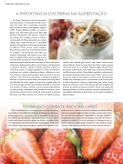 MERCADO, EMPRESAS & CIAA IMPORTÂNCIA DAS FIBRAS NA ALIMENTAÇÃOAs fibras alimentares são extremamenteimportantes para a manutenção da saúde e bem-estar, mas apesar disso, a quantidade consumidapelos brasileiros ainda é muito pequena. Segundoo DRI - Dietary Reference Intake -, a recomen-dação é que cada adulto ingira entre 20g e 40gde fibras diariamente. No entanto, a maioriadas pessoas não consegue alcançar o númerorecomendado. As fibras alimentares são célulasvegetais que o organismo não tem a capacidadede digerir. Elas podem ser facilmente encontradasnos legumes, frutas, cereais e grãos integrais.Esses alimentos devem ser inseridos diariamenteno cardápio, a fim de manter uma dieta rica,saudável e balanceada. Vale destacar que o idealé dar prioridade às fibras naturais e integrais, poisao passar pelo processo de industrialização, osalimentos perdem parte de seus nutrientes. As fibras são impres- cindíveis na vida das pessoas, afinal, trazem inúmeros benefícios para o organismo. Ajudam a regular as funções intestinais, auxiliam no controle do açúcar no sangue, equilibram os níveis de colesterol, contribuem no combate às doenças cardíacas, colaboram no con- trole de peso e, ainda, previnem alguns tipos de câncer, como por exemplo, o de cólon. Para potencializar os benefícios das fibras, é ideal que o consumo seja associado a uma dieta pobre em gordura saturada, além da prática regular de exercícios e ingestão diária de 2 a 3 litros de água. Há dois tipos de fibras alimentares: as solúveis e as insolúveis. As fibras insolúveis são encontradas especialmente no farelo de trigo, mas também estão presentes em verduras, arroz, torrada, pão, aveia em flocos, farelo de aveia, granola e semente de linhaça. Já as fibras solúveis se encontram em feijões, cenoura,cevada, aveia, lentilha, grão-de-bico, soja, dentre outras fontes naturais.Mesmo diante da importância das fibras, muitas pessoas relutam em inseri-las no cardápio. Algumas alegam falta de tempo para mudar a alimentação, outras dizem que o sabor dos alimentos com fibra é pouco atrativo. Na verdade, o que falta é conhecimento, pois existem alimentos deliciosos e ricos em fibras, como é o caso da cenoura, maçã, laranja, melancia e muitos outros. Falta de tempo também não é desculpa, pois se você costuma comer fora de casa, a melhor alternativa é optar por restaurantes que incluam frutas, legumes e verduras no menu. Vale destacar que essas categorias de alimento são práticas e bastante acessíveis. É tudo uma questão de educação alimentar. Lembre-se que com um pouco de dedicação, os seus hábitos alimentares podem mudar e a sua saúde vai agradecer pelas mudanças.MORANGO COMBATE RADICAIS LIVRESMais do que delicioso, o morango tem uma porção de compos- tos benéficos. Um trabalho do Instituto de Pesquisa em Alimentos da Noruega coloca o morango como um dos alimentos mais ricos em substâncias antioxidantes, importantíssimas contra os radicais livres, que formam moléculas capazes de danificar as células. Entre os componentes mais importantes está o ácido elágico. Trata-se de uma substância que tinge e protege os vegetais. No organismo, esseácido evita danos celulares, diminuindo a ameaça principalmente de tumores no aparelho digestivo. Esse é um dos motivos para o fruto ser cada vez mais associado à longevidade. O morango também é composto de uma rica mistura de minerais e contribui com fósforo, magnésio e potássio. O trio de nutrientes é fundamental para o sistema nervoso e, ainda, ajuda a manter por muito tempo a saúde muscular. Vale mencionar também a boa concentração de vitamina C.12ADI TI VOS & INGREDIEN TES