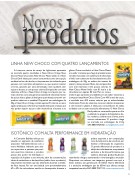 LINHA NEW CHOCO COM QUATRO LANÇAMENTOSA Lowçucar, marca de varejo da Lightsweet, apresenta ao mercado quatro novidades, o New Choco Crispy, New Choco Maxxi Chocolate, New Choco Maxxi Limão e o New Choco Dark. Ideais para serem consumidos como uma opção saudável na hora do lanche, os lançamentos são indicados para pessoas com restrições alimentares ou que querem manter a forma, optando por uma alimentação mais saudável, sem açúcar e lactose, e com poucas calorias.Enriquecido com sete vitaminas e fibras, o New Choco Crispy é composto por ce- reais cobertos com uma generosa camada de chocolate. Isento de açúcar, leite e glúten, é ideal para quem deseja consumir um produto saboroso e saudável. Disponível em embalagens de 40g, o New Choco Crispy contém apenas 81 calorias e é uma opção prática para oferecer principalmente para crianças que não podem ingerir açúcar e têm intolerância a lactose e aoglúten. Outra novidade é o New Choco Maxxi,um wafer crocante que chega às prateleiras nasversões chocolate com cobertura de chocolate,e limão com cobertura de chocolate branco. Emembalagens de 38g, os wafers são isentos deaçúcar e leite, possuem fibras, são enriquecidoscom sete vitaminas e têm poucas calorias. ONew Choco Maxxi limão tem 81 kcal e o dechocolate tem apenas 84 kcal. Para os consu-midores que apreciam uma bebida com um sabor marcante, a Lowçucar lança New Choco Dark. Com 40% a mais de cacau, a novidade tem 43% menos calorias que os achocolatados tradicionais. Fonte de vitaminas, com zero adição de açúcares e sem lactose e glúten, é ideal para consumidores de todas as idades com ou sem restrições alimentares. O New ChocoDark pode ser consumido quente ou frio e utilizado no preparo de brigadeiros, bo- los, recheios, coberturas e cremes, entre outras sobremesas. O produto chega ao mercado em embalagem de 210g. SAC 0800 642 8182 - www.lightsweet.com.brISOTÔNICO COM ALTA PERFORMANCE EM HIDRATAÇÃOA Comexim Bebidas reforça suaatuação no segmento de isotônicos(repositor hidroeletrolítico) com amarca Athlética. Indicado para atle-tas, esportistas e pessoas que prati-cam exercícios intensos, o produtopossui alto poder de hidratação ereposição de líquidos e sais minerais, além de concentrações ideais de carboidrato e de eletrólitos (sódio, cloro e potássio), importantes nutrientes que são eliminados durante a ativida- de física intensa. Por ser uma bebida com aproximadamente 6% a 8% de carboidratos, auxilia no desempenho durante aprática esportiva e em competições com duração acima de uma hora por facilitar a hidratação do organismo. O grande diferencial do produto é a adição de maltodextrina, componente exclusivo e de alta performance que auxilia a absorção gradual da glicose,retardando a fatiga e aumentando o nível energético muscular. Disponíveis nos sabores uva, tangerina, guaraná com açaí, e limão siciliano, em garrafas pet de 650ml. Outro diferencial é a exclusiva embalagem pet de 650ml que oferece tampa rosqueável com alça. SAC: 0800 703 7133 - www.comexim.com.br27NovosprodutosADITIVOS & INGREDIENTES