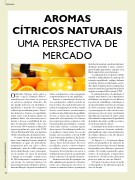 BEBIDASAROMASCÍTRICOS NATURAISUMA PERSPECTIVA DEMERC ADOOdelicado balanço entre sabor e odor o qual é chamado “flavor”, contribui para dar prazer às pessoas ao saborear qualquer alimento. Há um grande interesse em identificar e quantificar a maioria dos compostos voláteis que contribuem para o “flavor” dos alimentos. Aromas com qualidade, assim como, suas dosagens ideais aos produtos finais, são essenciais para se manter o frescor e estabilidade do pro- duto. No presente trabalho, o foco está nos aromas 100 % naturais conhecidos internacionalmente pela sigla FTNF ( From The Named Fruit), que significa obtido naturalmente da própria fruta.O aroma de um determinado pro- duto é um conjunto bastante amplo de substâncias as quais são diretamente responsáveis pelo seu odor e sabor. Atualmente, mais de 6.000 compostos foram identificados como participan- tes de aromas. Os sucos de maracujá e laranja, por exemplo, contém cerca de 200 componentes responsáveis por seu aroma. As técnicas clássicas de processamento desses alimentos levam a uma modificação ou perda consideráveldestes componentes, com consequente comprometimento de sua qualidade.Durante a concentração destes su- cos, componentes voláteis contidos na fase de vapor, são condensados pelos sis- temas de recuperação de aroma. A perda destes constituintes aromatizantes resulta em uma diminuição da qualidade do suco, a menos que estes compostos sejam nele reincorporados. Os sistemas de recuperação destes compostos volá- teis geram duas fases distintas: essência oleosa (fase oleosa) e essência aquosa (fase aquosa). O rendimento médio des- tes produtos é muito baixo. No caso da laranja, são necessários cerca de 2.000 kg de frutas para produzir 1 kg de fase aquosa e 8.000 kg para 1 kg de fase oleosa. Estes dois produtos são ricos em aldeídos, ésteres e outros compos- tos voláteis. Como o armazenamento e transporte de tais produtos são caros, a avaliação dos processos de concentração destas essências é de grande interesse.Inúmeros métodos de separação tem sido aplicados para promover o fraciona- mento dos componentes dos óleos es- senciais e essências. Dentre os principaismétodos de separação, podemos destacar: destilação fracionada a vácuo, cromato- grafia líquida preparativa, extração com fluido supercrítico e pervaporação.A composição dos compostos voláteis extraidos, independente de qual tipo de extraçãosejautilizado, originaobalanço aromático ideal a ser adicionado ao pro- duto final. A mistura destes componentes naturais extraidos da própria fruta darão origem ao aroma 100% natural, FTNF.O principal objetivo da destilação é separar uma mistura em componentes individuais, em função de seus diferen- tes níveis de volatilidade. A destilação é um dos principais métodos de extração de óleos essenciais a partir de plantas. A percentagem de cada um dos com- ponentes na fase de vapor, geralmente depende da sua pressão de vapor a uma determinada temperatura. Dependendo do produto desejado, escolhe-se o méto- do de fracionamento ideal.A destilação fracionada a vácuo tem sido um processo bastante utilizado, principalmente após o desenvolvimento de colunas eficientes com alto número de pratos teóricos.As Figuras 1 a 4 mostram alguns perfis cromatográficos de amostras de essência oleosa ou fase oleosa de laranja fracionadas pelos diferentes processos citados. Um estudo comparativo quan- titativo dos principais componentes aromáticos, obtidos pelos diferentes processos pode ser visto na Tabela 1.Na Figura 5 pode-se observar perfis cromatográficos de diferentes tipos de suco de laranja.50ADITIVOS & INGREDIENTES