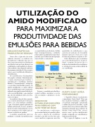 BEBIDASU TILIZ AÇÃO DO AMIDO MODIFIC ADO PARA MAXIMIZAR A PRODUTIVIDADE DAS EMULSÕES PARA BEBIDASEMULSIFICANTES NA PRODUÇÃO DE BEBIDASComo óleo e água não são natu- ralmente miscíveis, as emulsões são normalmente utilizadas para que os óleos essenciais possam ser adicionados em bebidas sem que haja alteração na estabilidade e uniformidade do sistema. Uma emulsão é uma dispersão uniforme de pequenas gotículas de óleo em meio aquoso, que é estabilizada utilizando-se emulsificantes.Os emulsificantes desempenham dois papéis: reduzem, dinamicamente, a tensão interfacial para facilitar a emulsificação e estabilizam emulsões durante o armazenamento, transporte e no produto final (bebida pronta). Os amidos modificados e a goma arábica são os emulsificantes mais comumente utilizados em emulsões para bebidas de- vido à sua anfifilicidade, o que significa que eles têm afinidade tanto com óleo, como com água.As emulsões à base de óleos aromáti- cos e corantes naturais não só fornecem sabor e cor, como também a turbidez, o que é desejável quando aplicada em bebida carbonatada. Às vezes, emulsões de óleos neutros (isoladamente ou com óleos aromáticos) são usadas para au- mentar a turbidez no produto.A emulsão concentrada, após sua produção, é enviada em tambores paraos engarrafadores produzirem a bebida final. Consequentemente, a indústria pode reduzir a quantidade de água trans- portada, o que resulta em uma operação mais eficiente e sustentável.Portanto, o emulsificante ideal deve conferir turbidez, maximizar o teor de óleo na emulsão e minimizar o uso de água.DESAFIO DE ESTABILIZAR EMULSÕES PARA BEBIDAS COM ALTO TEOR DE ÓLEOOs emulsificantes tradicionais apresentam limitações quando utiliza- dos com o objetivo de estabilizar emulsões com alto teor de óleo, pois essas emulsões requerem uma altaquantidade de emulsificantes o que ocasiona um aumento da viscosidade durante o processo. Nesse caso, o teor de óleo não poderá ser superior a 15%.Outra limitação é que as emulsões são termodinamicamente instáveis. Então, o aumento do teor de óleo e a redução da quantidade de emulsifican- te resultam em uma emulsão difícil de ser estabilizada.IngredienteBaixo Teor de ÓleoAlto Teor de ÓleoEmulsificante %Óleo: emulsificante taxaEmulsificante %Óleo: emulsificante taxaPurity Gum®34:164:1Amido tradicional121:1Failed all levelFailed all levelGoma arábica211:1.175Failed all levelFailed all levelPURITY GUM® ULTRA PERFORMANCEA Ingredion lançou recentemente o ingrediente Purity Gum® Ultra que traz excelentes benefícios à indústria. A tecnologia empregada é patenteada e utiliza um processo inovador, o qual permite obter uma estrutura molecular otimizada adequada para emulsões de bebidas. Purity Gum® Ultra, oferece quatro vezes o poder emulsificante quando comparado aos emulsificantes tradicionais de bebida.Ele é capaz de duplicar o teor de53ADITIVOS & INGREDIENTES