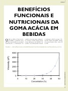 BEBIDASBENEFÍCIOS FUNCION AIS E NUTRICIONAIS DA GOMA ACÁCIA EM BEBIDASQuando se utiliza a Goma Acácia em bebidas, a primeira coisa que vem à nossa mente é o seu papel emulsificante e estabilizante ememulsões de aromas para refrigeran- tes. Porém, a Goma Acácia possui vastas aplicações em bebidas. Na verdade, esse polissacarídeo naturalé totalmente solúvel em água e de- senvolve baixa viscosidade, mesmo em concentrações altas, como 20 ou 30%.FIGURA 1 - INFLUÊNCIA DA CONCENTRAÇÃO NA VISCOSIDADE DA GOMA ACÁCIA (A 25°C)5000 4000 3000 2000 100000 1020 Concentration (%)40 503055ADITIVOS & INGREDIENTES