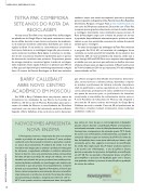 MERCADO, EMPRESAS & CIATETRA PAK COMEMORASETE ANOS DO ROTA DARECICLAGEMHá sete anos a Tetra Pak criou o buscador Rota da Reciclagem, em plataforma do Google Maps, e hoje pode comemorar a marca de um milhão de visitas e mais de cinco mil pontos de recebimen- to de materiais recicláveis cadastrados, distribuídos por todas as regiões do Brasil. O site auxilia os consumidores a encontrarem locais para destinarem as embalagens longa-vida pós-consumo e outros materiais recicláveis. Basta digitar o endereço no localiza- dor do site e as pessoas descobrem rapidamente quais os pontos de descarte dos recicláveis mais próximos. Cooperativas, pontos de entrega voluntária e comércios ligados à cadeia de reciclagem estão mapeados. Outra opção de busca é o aplicativo para iPhone e iPad, que está disponível para download gratuitamente na Apple Store. O sucesso do Rota da Reciclagem no Brasil nos estimulouBARRY CALLEBAUTABRE NOVO CENTROACADÊMICO EM MOSCOUEm 2008, a Barry Callebaut abriu seu primeiro centro de treinamento nas instalações de sua fábrica de chocolate em Chekhov, a 60 km ao Sul de Moscou. Realocados agora para o centro da cidade de Moscou, a nova Academia de Chocolate continuará a ser um centro de treinamento exclusivo na Rússia. Segundo a Barry Callebaut, trata-se do único centro desse tipotambém a lançar uma versão em espanhol, que traz os principais pontos mapeados na Argentina, Chile, Panamá, Costa Rica, República Dominicana, Paraguai e Uruguai. Hoje, o www.rutadelreciclado.com tem cerca de 500 pontos cadastrados. De acordo com a Tetra Pak, a empresa possui grande conhecimento na área de coleta seletiva e reciclagem, funcionando como catalisadora nesse processo. O Rota da Reciclagem surgiu com o intuito de prestar um serviço à população, disponibilizando alternativas para a prática da coleta seletiva e, com isso, permitindo o aumento do volume de material enviado para a reciclagem.As taxas de reciclagem das embalagens da Tetra Pak continuam a progredir. Em 2014, 651 mil toneladas de embalagens foram recicladas no mundo, ante 623 mil toneladas do ano anterior. Isso representa 26% do total produzido pela empresa, sendo que a meta é atingir 40% até 2020. Para isso, a empresa está empenhada e trabalha com seus parceiros para enfrentar os desafios, tais como a falta de infraestrutura em alguns mercados. O Brasil reciclou mais de 76 mil toneladas em 2014, o que representa 31% das embalagens comercializadas no País.que oferece uma gama diversificada de seminários, demonstra- ções, cursos teóricos e oficinas práticas, destinados a inspirar os artesãos e profissionais da culinária, incluindo chocolatiers, chefs de panificação e outros especialistas em chocolate, bem como culinaristas profissionais. O centro também servirá como um ponto de encontro para os profissionais de chocolate, incentivando o intercâmbio de conhecimento técnico entre si. A nova Academia do Chocolate em Moscou está integrada a uma rede de 18 outros centros de formação do Grupo Barry Callebaut em todo o mundo. Cerca de 38 mil profissionais de chocolate e artesãos recebem treinamento nessas modernas academias a cada ano.NOVOZYMES APRESENTA NOVA ENZIMAA Novozymes anunciou o lançamento de uma nova enzima visando a produção de xaropes de maltose. O novo produto, conhecido como Secura, ajuda a otimizar as operações e reduzir os custos de processamento. A indústria de amido é um dos mercados mais antigos para as enzimas e produz uma vasta gama de adoçantes e ingredientes utilizados na indústria alimentícia. Secura é descrito como uma enzima beta-amilase termoestável de baixo pH para a produção de xarope de maltose, com uma atividade mais elevada do que os produtos beta-amilase prove- nientes de plantas, resultando em uma dosagem mais simples, mais consistente e que não precisa de acompanhamento constante durante o processamento. Segundo a Novozymes, o fato de que Secura tolera temperaturas mais elevadas oferece um benefício importante para os produtores de amido. Os xaropes de maltose são tipicamente produzidos a temperaturas inferiores a 55°C - 60°C e tem pressão osmótica relativamente baixa. Isso significaque existe um risco de que os microorganismos indesejados possam crescer durante a sacarificação. Manter a temperatura mais elevada, minimiza o risco de infecções bacterianas e Secura funciona bem a temperaturas tão elevadas quanto 70°C.Ainda de acordo com a Novozymes, tradicionalmente, a produção de xarope de maltose requer um aumento de pH 4,0 a 5,6 antes da fase de liquefação, bem como ajuste adicional para baixar o pH, novamente, para a fase seguinte no processo de sacarificação do amido. Esse duplo ajuste de pH requer produtos químicos e, de acordo com a Novozymes, o uso de LpHera e Secura, permite a execução dos processos de liquefação e sacarificação em pH 4,8. No ano passado, a Novozymes lançou os LpHera para simplificar o processo de liquefação, agora com o Secura, está ajudando a facilitar o processo de sacarificação na produção de xarope de maltose.10ADITIVOS & INGREDIENTES