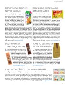 BISCOITOS SALGADOS EM NOVOS SABORESA marca Nesfit® relança seu portfóliode biscoitos salgados. A nova linha estádisponível nos sabores integral e multice-reais, além do lançamento mix de gergelim,que contém gergelim preto e dourado. Osbiscoitos contêm cereais integrais e pos-suem baixo teor de gordura saturada. Asembalagens continuam com seis pacotinhosde 21g cada, uma opção prática para asrefeições intermediárias. A marca Nesfit®oferece opções nos segmentos de cereais matinais e biscoitos. A linha de cereais matinais conta com as versões Nesfit® Tra- dicional, Nesfit® Frutas e Nesfit® Mel & Amêndoas. Todos os itens são feitos com cereais integrais, além de fibras, vitaminas e minerais. Para os lanchinhos entre as principais refeições, Nesfit® oferece 11 variedades de biscoitos, sendo cinco do- ces (Cacau & Cereais, Morango & Cereais, Aveia & Mel, Leite & Mel e Coco), três salgados em pacotes com embalagens individuais (Integral, Multicereais e Mix de Gergelim) e três salgados em embalagem maior (Integral, Centeio e Gergelim). SAC: 0800 770 2457 - www.nestle.com.brBOLINHO MINIXA marca Pullman, do Grupo Bimbo, apresenta a novidade Minix com o conceito de bolo caseiro para monoporções nos sa- bores chocolate e cenoura com cobertura dechocolate. Com formato inovador e embalagem diferenciada, a Pullmanamplia seu portfólio com um pro- duto totalmente novo no mercado,ideal para saborear a qualquer hora e em qualquer lugar. Fofinho e fresquinho, Minix traz aquela sensação do bolo artesanal com textura macia. O bolinho está disponível em embalagens individuais de 80g, com duas unidades de 40g cada. SAC: 0800 702 4626www.mundopullman.com.brMACARRÃO INSTANTÂNEO EM NOVO SABORA Nissin-Ajinomoto, líder no segmen-to de macarrão instantâneo no Brasil -comemora 50 anos da linha Nissin® MiojoLámen® no país e, para celebrar a data,preparou uma série de novidades para osconsumidores da marca. Uma delas é o lançamento de um novo sabor: frango assado com toque de limão. A novidade surgiu a partir de sugestões dos consumidores e pelo interesse da empresa em associar um sabor que representasse a culiná- ria brasileira, com o conceito comemorativo de Nissin® Miojo Lámen® 50 anos. Segundo a empresa, o limão é muito usado para dar um toque especial nos pratos, principalmente em receitas de massa e frango, por isso pensou em incrementar o portfólio de produtos com a suculenta novidade. As primeiras unidades do macarrão instantâneo foram produzidas em 1965, nos sabores galinha e carne. De lá pra cá, outros 22 sabores fizeram parte do portfólio. Em 1975, foi lançado o sabor galinha caipira, o produto mais vendido da linha. Hoje, o Nissin® Miojo Lámen® está disponível em nove sabores: galinha caipira, carne, galinha, picanha, legumes, carne com tomate, bacon, caldo de feijão e camarão. SAC: 0800 7049 039 - www.ajinomoto.com.brCAFÉ DO CENTRO EM NOVAS EMBALAGENSAs novas embalagens do Café Gourmet,do Café do Centro, acaba de ganhar umanova roupagem. A ideia foi traduzir toda asofisticação do café em uma embalagemmais delicada, fina e com um toque de le-veza em seus traços e também na sua cor,que sofreu uma singela alteração, adquirindoum tom dourado com mais requinte. Alémdisso, o novo layout traz letras menores e o logo atualizado da empresa. O Café do Centro é reconhecido pela excelência na qualidade dos seus grãos e pelo incentivo ao consumo de um café de excelente qualidade. SAC: (11) 3811-6700 www.cafedocentro.com.brCHÁS INSTANTÂNEOS COM NOVOS SABORESA Magro, marca de varejo da Lightsweet, está ampliando sua linha de chás instantâneos com quatro novos sabores: chá verde com abacaxi e hortelã, chá verde com cranberry, chá vermelho com frutas vermelhas, e chá branco com maçã. As novidades integram o portfólio da marca que já possui as opções chá verde com limão, e chá verde com pêssego. Em embalagens com 8g, os lançamentos são isentos de açúcares, glúten e lactose, possuem baixo teor de sódio e já vêm adoçados. Cada sachê faz um litro de bebida, ou 5 porções de 200ml com apenas 5 calorias cada. Ricos em vitamina C e antioxidantes naturais, os chás Magro podem ser consumidos por pessoas de qualquer idade, principalmente por aquelas que fazem dietas especiais ou desejam manter uma alimentação mais saudável com poucas calorias. SAC:zv 0800 642 8182 - www.lightsweet.com.br21LANÇAMENTOS