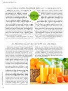 MERCADO, EMPRESAS & CIAGUIA PARA ROTULAGEM DE ALIMENTOS EMBALADOSA AMG Foods está lançando o Guia para Rotulagem de Alimentos Embalados de Competência da ANVISA. Iné- dito no mercado, o Guia interpreta as legislações destinadas à elaboração dos rótulos dos produtosde competência da ANVISA, com orientações decomo aplicá-las na prática. Segundo a AMG Foods,não se trata de uma reprodução dos textos legais,mas sim do resultado da experiência da empresa sobrea matéria de forma clara, objetiva e didática. No formato deum e-book, o Guia pode ser utilizado em qualquer plataforma: PC, Mac,Android, em tablets ou celulares e tem versões em português, inglês e espanhol. O seu mecanismo de busca é simples e permite que o usuário encontre rapidamente o que procura. Dinâmico, tem a vantagem de ser interativo, ou seja, pode ser customizado conforme as necessidades de cada empresa e adequado ao seu perfil, por meio de anotações e comentários pertinentes a cada produto, pois está aberto à inserção de marcadores ou notas. É totalmente diferente de um livro ou qualquer outro tipo de material consolidado, que não permite nenhum tipo de interação.Como as empresas e os profissionais que atuam na área precisam estar sempre atualizados com as regras de rotulagem e sua corretaaplicação, o Guia auxilia na solução de dúvidas e na devida implementação das normativas referentes aos rótulos dos produtos.A AMG Foods garante atualizações constan- tes no seu conteúdo, em decorrência de alterações ou publicações de novas normas, com o objetivo de oferecer uma ferramenta sempre atualizada, em face das mudanças ocorridas, o que é um grande diferencial em relação a outros tipos de materiais. Nos rótulos de alimentos devem constar as informações regulamentadas pela ANVISA (Regulamentos Técnicos), Ministério do Desenvolvimento, Indústria e Comércio Exterior (pesos e medidas) e Ministério da Jus- tiça (defesa do consumidor). O Guia explica, passo a passo, a correta disposição desses itens, detalhando e interpretando de acordo com legislação específica ou ato normativo, bem como disponibiliza todas as referências, que podem ser acessadas imediatamente, na elabo- ração dos rótulos. Segundo a AMG Foods, a utilização desse Guia proporciona segurança na elaboração dos rótulos pelas indústrias de alimentos.Além disso, é uma ferramenta que também interessa às Câmaras de Comércio, aos Consulados, aos Escritórios de Advocacia, às Entidades Setoriais, às Universidades, às Indústrias de Aditivos ede Embalagens e até às Agências de Publicidade.AS PROPRIEDADES BENÉFICAS DA LARANJAAlguns estudos vêm demonstrando que propriedades benéficas da laranja lhe atribuem características de um alimento funcional. A casca de frutas cítricas, como a laranja contém quantidades importantes de flavonóides (naringenina e hesperidina). O con- sumo diário desses componentes foi associado, em estudos, à diminuição do risco de doenças cerebrovasculares tanto para homens e mulheres. Além dos flavonóides, a pectina, uma fibra presente na casca, tem propriedades que reduzem o colesterol e está relacionada, também, ao aumento do número debactérias naturais do intestino, sugerindo um efeito prebiótico.A parte externa da casca da laranja utilizadaem estudos apresentou propriedades anticancerígenasem relação ao tumor intestinal. O efeito antioxidantee anti-inflamatório do suco de laranja, foi comprovadopor diminuição dos índices de radicais livres e outros marcadores inflamatórios apresentados no sangueapós o seu consumo juntamente com a refeição. Os pesquisadores atribuíram este efeito à presença da naringenina e hesperidina no suco. Além disso, umestudo demonstrou que o consumo de 750ml de sucode laranja diariamente por quatro semanas é capaz deaumentar o colesterol HDL. Outro nutriente presenteé a vitamina C, no qual as frutas cítricas, em especiala laranja e seu suco, são ótimas fontes. A vitamina C(ácido ascórbico) é um dos nutrientes com função antioxidante (removedor de radicais livres, nutrindoe protegendo as células), além de apresentar efeito hipotensivo (diminuição da pressão) aumentando adilatação dos vasos sanguíneos. No albedo da laranja (bagaço), foi encontrado o maior teor de hesperidina em relação às outras partes da fruta.Alguns achados indicam que a hesperidina diminui o colesterol total e os níveis de triglicerídeos.Além de provocar mudanças no perfil lipídico, esse flavonóide também possui ação antioxidante. Portanto, evidências comprovam que todas as par- tes comestíveis da laranja fornecem benefícios à saúde, além de fornecer nutrientes essenciais.16ADITIVOS & INGREDIENTES