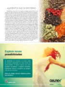 ALIMENTOS RICOS EM FERROOs alimentos ricos em ferro é um auxílio no combate à anemia. O ferro é um nutriente de origem mineral muito importante ao bom funcionamento do organismo. A deficiência de ferro é a forma mais comum de deficiência nutricional, especialmente entre as crianças e as mulheres grávidas. Quando ocorre uma má alimentação, princi- palmente aos alimentos ricos em ferro, pode causar anemia e torná-lo mais suscetível a doenças e infecções, chegando até mesmo a causar parto prematuro em mulheres grávidas. O ferro é um mineral essencial no transporte de oxigênio no organismo, formação de glóbulos vermelhos, manutenção do sistema imunológico, produção e manutenção de vários neurotransmissores cerebrais e na proteção contra danos provocados por oxidantes. Entre a gama de alimentos ricos em ferro estão o fígado, um excelente alimento rico em ferro, pois contêm cerca de 5mg para cada 100g de seu consumo; as ostras que, embora não seja um alimento consumido todos os dias, é uma excelente fonte de ferro, pois contêm cerca de 7,9mg para cada 100g de seu consumo; o grão de bico, que fornece ao organismo quase 5mg de ferro para cada 100g de seu consumo, além de ser uma boa opção para os vegetarianos, pois é rico em proteínas; uma xícara de sementes de abóbora contém mais de 3mg de ferro, por este motivo é uma boa opção de alimento rico em ferro.A beterraba também é uma boa opção de alimentos ricos em ferro, já que possui 2,7mg de ferro para cada 100g de seu consumo. O cominho é um tempero rico em ferro, tendo cerca de 0,6mg de ferro para cada 2g de seu consumo. Na prática, quando utilizado para temperar carnes, peixes, massas e arroz, está adicionando ferro às refeições. Além dos já citados, a soja, o feijão, as lentilhas, o espinafre, as sementes de gergelim e o pão de cevada também são ótimas opções de alimentos ricos em ferroMERCADO, EMPRESAS & CIA17ADITIVOS & INGREDIENTES