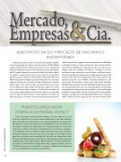 Mercado, Empresas&Cia.AJINOMOTO SAI DO MERCADO DE MACARRÃO INSTANTÂNEOA Ajinomoto acabou saindo do mercado de macarrão instantâ- neo. A empresa japonesa, dona de um faturamento de R$ 2 bilhões no país, mantinha desde 1965 uma joint venture com a compatriota Nissin no segmento, do qual era líder absoluta, com uma participação de 63%, segundo dados da consultoria Nielsen. Meio século depois, no entanto, o macarrão ficou para trás e sumiu do seu portfólio. Quando a parceira ofereceu cerca de R$ 1 bilhão pelos 50% que a Ajinomoto possuía no negócio, a proposta não demorou a ser aceita. Segundo a Ajinomoto, o mercado era bem rentável, mas a empresa queria mudar o foco, dando atenção aos seus produtos para tornar o nome Ajinomoto mais popular. Um fato que colaborou, e muito, para a venda de sua fatia no negócio de macarrão instantâneo foi o nome do produto.Apesar da parceria ter durado cinco décadas, todos os tipos de miojo levavam o nome da Nissin. O objetivo da Ajinomoto, agora, é fortalecer sua marca institucional.A proposta ésimilar à executada por gigantes como a americana Procter & Gamble e a britânica Unilever e, mais recentemente, a francesa Saint-Gobain: marcas fortes abrigadas sob o guarda-chuva de uma empresa com imagem ainda mais resiliente. No Brasil, a estratégia é priorizar condimentos mais sofisticados e que facilitem a vida dos consumi- dores do chamado mercado gourmet, um filão que tem se mostrado promissor para a Ajinomoto. Enquanto o setor cresceu 10%, no ano passado, de acordo com a Nielsen, a empresa aumentou em 15% suas vendas. Para continuar nesse ritmo, estão sendo investidos R$ 330 milhões durante o triênio 2014/2016,principalmente na criação de novos produtos. Para este ano, a principal aposta é a linha Satis, especializada em temperos de pratos específicos, como almôndegas, gratinados, frango xadrez e frango à milanesa. No cenário global, a empresa se prepara para novas aquisições.A Ajinomoto irá investir US$ 1,7 bilhão em fusões e aquisições até o fim do ano fiscal de 2016.10PURATOS LANÇA NOVA FÓRMULA DOTEGRAL DONUTCom a exclusiva tecnologia Soft’r Melting, a Puratos elaborou a nova fórmula do Tegral Donut, uma pré-mistura balanceada, à qual basta adicionar água e fermento para obter donuts com maciez prolongada, mais fresquinhos, que derretem na boca. Os donuts, quase obrigatórios no mix de produtos do consumidor moderno, são elaborados nos formatos de anéis ou rosca (com cobertura e confeitos coloridos) e shell (redondo com recheio), os mais apre- ciados. Segundo a Puratos, no Brasil os sabores preferidos são creme confeiteiro, chocolate, brigadeiro, doce de leite, coco e morango. O novo Tegral Donut agora vem em caixas com seis pacotes de 2 kg, sendo que cada pacote rende 60 donuts de 50g. De acordo com a Puratos, o consumidor moderno está mais exigente,buscanovossabores,frescor,diferenciaçãoemformatos,exatamenteo que oferece a nova fórmula do Tegral Donut. Hoje, segundo a Puratos, mais de 1,8 bilhão de donuts são consumidos no mundo e a tendência de crescimento traz essa possibilidade às panificadoras brasileiras.ADITIVOS & INGREDIENTES