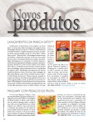 LANÇAMENTOS DA MARCA SATIS!TMA Ajinomoto do Brasil lança nove produtos da marca Satis!TM em três novas linhas de temperos da categoria menu: Almôndegas, Pratos Incríveis em 1 Minuto e Gratinados. As novidades celebram o segundo aniversário da marca e somam às demais versões lançadas em 2012 e 2013: Satis!TM Molho Shoyu e Satis!TM Milanesa. Satis!TM Almôndegas foi desenvolvido para facilitar a elaboração de pratos à base de carne moída (bovina, suína ou de frango). É ideal para o preparo de almôn- degas, hambúrgueres ou rocamboles. O produto dispensa o uso de diversos ingredientes utilizados no preparo convencio- nal, basta adicioná-lo à carne moída e moldar como preferir. Além disso, a consistência proporcionada à mistura permite que as almôndegas sejam preparadas no forno ou grelhadas na frigideira. Satis!TM Almôndegas está disponível nos sabores Tradicional, Picanha e Ervas com Aveia. Cada embalagem de 60g rende 500g de carne. Outra novidade da marca Satis!TM é a linha Pratos Incríveis em 1 Minuto, que traz inovação ao preparo de refeições como bife e frango grelhados. Para isso, é preciso apenas grelhar a carne, acrescentar um sachê do pro- duto e 120ml de água. Os pratos ficam prontos em apenas um minuto. Satis!TM Pratos Incríveis também está disponível em três versões: Bife Acebolado, Carne ao Molho Madeira e FrangoXadrez. JáSatis!TMGratina-dos podeser aplica-do sobrebatatas,massas elegumes.Disponí-vel em sachês de 24g e nossabores Tradicional, Espinafre eChampignon, o produto facili-ta todo o processo de elabo-ração de pratos, que normal-mente exige diversas etapas.É só acrescentar o conteúdoda embalagem em 400ml deleite. Depois, basta despejar amistura sobre o prato escolhido,adicionar 50g de queijo ralado e levar ao forno. SAC: 0800 7049 039 - www.ajinomoto.com.brMAGUARY COM PEDAÇOS DE FRUTAA nova linha Maguary Pedaços, marca pertencente a Ebba, chega para revolucionar o segmento pronto para beber em embalagens de 200ml. Inéditos no Brasil, estão disponí- veis nos sabores pêssego, maçã e manga. A nova linha vem acompanhada de um canudo especial, com diâmetro maior, que permite a circulação dos pedaços. É uma opção de snack saudável, fonte de vitamina C e muito prática para consumo on the go de crianças, jovens e adultos. Os sabores da linha Maguary Pedaços foram cuidadosamente selecionados,levando em conta as características das frutas, seus nutrientes e vitaminas, além de seu desempenho para despertar uma experiência única para o consumidor. Os novos produtos da linha Maguary Pedaços são envasados em embalagens cartonadas assépticas Combibloc Mini de 200ml, da SIG Combibloc, por meio da tecnologia exclusiva drinkplus, que permite o envase de produtos com pedaços de frutas de até seis milímetros de comprimento e largura. SAC: 0800 081 3022 - www.maguary.com.br20NovosprodutosADITIVOS & INGREDIENTES