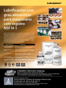 Lubriplate®Lubrificantes com grau alimentício para maquinário com registroNSF H-1A linha completa de lubrificantes da Lubriplate de alto desempenho, com grau alimentício para maquinário e registro NSF H-1 foi criada para proporcionar capacidade total de lubrificação em fábricas de processamento de alimentos e engarrafadoras. Fabricados em estrita conformidade com os padrões de garantia de qualidade registrada ISO 21469 e ISO 9001, estes lubrificantes são formulados com óleos da mais alta qualidade combinados com aditivos antidesgaste de última geração. Apresentam diversas vantagens na relação custo-benefício, como indicado no quadro abaixo.CARACTERÍSTICASFormulações avançadas de alto desempenhoProdutos com registro NSF H-1Uso multifuncionalAssistência técnicaTel: 11 4053-3339 (Brasil)Levantamentos gratuitos da fábricaBENEFÍCIOSDurabilidade maior do maquinário;menor desgaste; menor consumo de energia; intervalos de lubrificação prolongados.Garante o atendimento das diretrizes USDA/FDA e dos programas de Análise de Perigos e Pontos Críticos de Controle (HACCP).Reduz, consolida e simplifica os estoques de lubrificantes minimizando a aplicação errada de lubrificantes.Respostas rápidas às suas dúvidas sobre lubrificação.Identifica oportunidades de consolidaçãoe aperfeiçoamento do estoque de lubrificantes.REGISTRO H-1Certificadas Kosher PareveISO9001RegistradoISO21469Conforme aLubriplate Lubricants CompanyMatriz / 129 Lockwood Street / Newark, NJ 07105 EUAEscritório e fábrica do Centro-Oeste (EUA) / 1500 Oakdale Ave. / Toledo, OH 43605 EUA Tel: +1-973-465-5700 / www.lubriplate.com / E-mail: info@lubriplate.comDistribuidor autorizado no Brasil:Tirreno Indústria e Comércio de Produtos Químicos Ltda.Rua Bandeirantes, 610 / Diadema, SP. CEP: 09912-230Tel: +55 11 4053 - 3333 / Fax: +55 11 4056 - 5061www.tirreno.com.br / E-mail Comercial: admvendas@tirreno.com.br E-mail Dúvidas Técnicas: labfluidos@tirreno.com.br