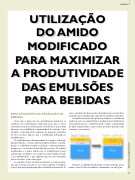 BEBIDASUTILIZAÇÃO DO AMIDO MODIFICADO PARA MAXIMIZAR A PRODUTIVIDADE DAS EMULSÕES PARA BEBIDASEMULSIFICANTES NA PRODUÇÃO DE BEBIDASComo óleo e água não são naturalmente miscíveis, as emulsões são normalmente utilizadas para que os óleos essenciais possam ser adicionados em bebidas sem que haja alteração na estabilidade e uniformidade do sistema. Uma emulsão é uma dispersão uniforme de pequenas gotículas de óleo em meio aquoso, que é estabilizada utilizando-se emulsificantes.Os emulsificantes desempenham dois papéis: reduzem, dinamicamente, a tensão interfacial para facilitar a emulsi- ficação e estabilizam emulsões durante o armazenamento, transporte e no produto final (bebida pronta). Os amidos modificados e a goma arábica são os emulsificantes mais comumente utilizados em emulsões para bebidas devido à sua anfifilicidade, o que significa que eles têm afinidade tanto com óleo, como com água.As emulsões à base de óleos aromáticos e corantes natu- rais não só fornecem sabor e cor, como também a turbidez, o que é desejável quando aplicada em bebida carbonatada. Àsvezes, emulsões de óleos neutros (isoladamente ou com óleos aromáticos) são usadas para aumentar a turbidez no produto. A emulsão concentrada, após sua produção, é enviada em tambores para os engarrafadores produzirem a bebida final. Consequentemente, a indústria pode reduzir a quantidade de água transportada, o que resulta em uma operação maiseficiente e sustentável.Portanto, o emulsificante ideal deve conferir turbidez, maxi- mizar o teor de óleo na emulsão e minimizar o uso de água.51ADITIVOS & INGREDIENTES